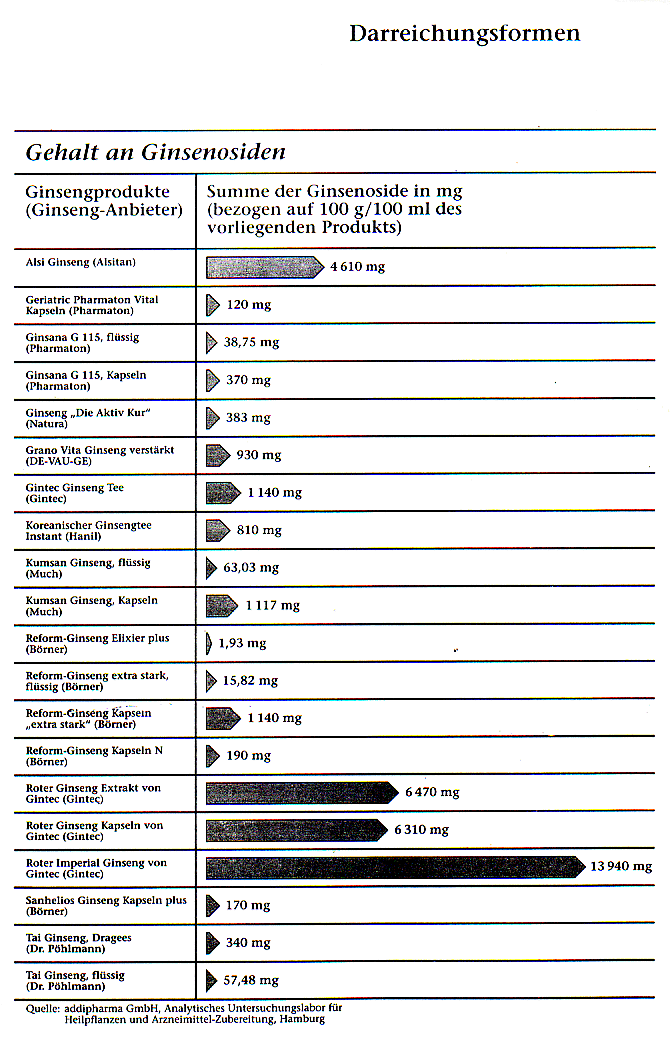 GINSENOSIDGEHALTE IM VERGLEICH